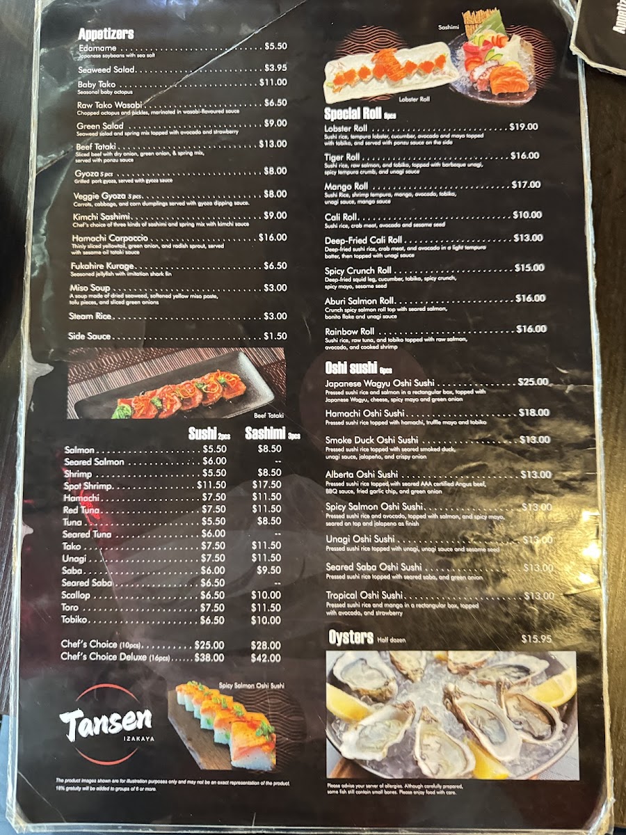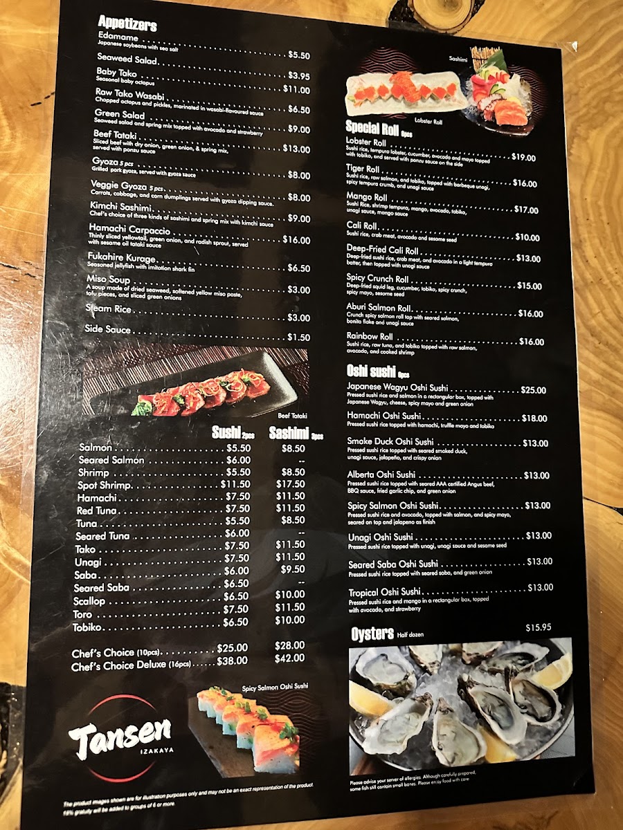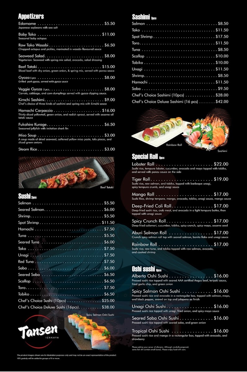 Tansen Izakaya Edmonton Menu