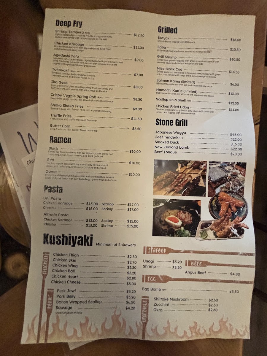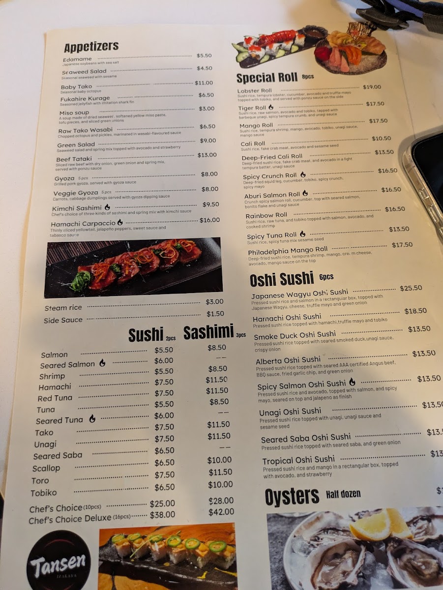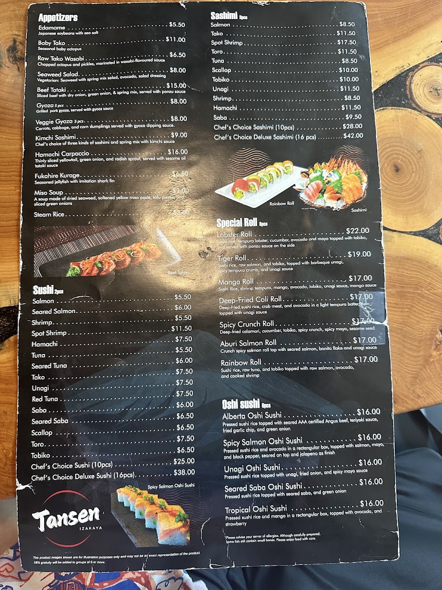 Tansen Izakaya Edmonton Menu